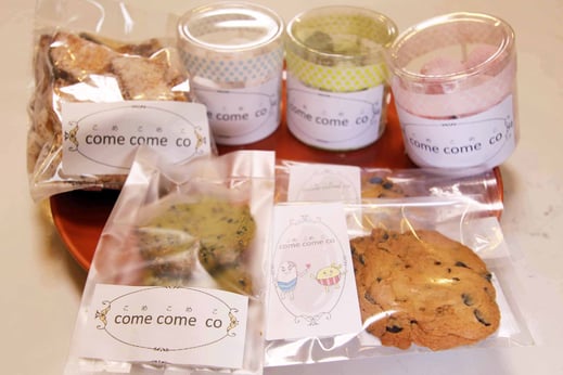 『こめこめこ』の商品は、すべて手作りです。丹精込めて、お客様のうれしい顔を思い浮かべながら、せっせとこしらえています。